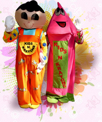 Kiddy and Krayon, our school mascots are twins with different personalities. Kiddy is a bubbly girl who loves to dress-up, and is also intelligent and curious. Not far behind is Krayon, who is symbolic of all the colors that need to be filled in the developmental stages of every child. He is enthusiastic and fun-loving and the more sensible one amongst the two. The children learn to listen to their stories especially during the concept time when the twosomes are the main characters. The children readily give their attention to all that both of them introduce. Our mascots are part of every event held in school. The children completely identify with them as they represent the school they love. |